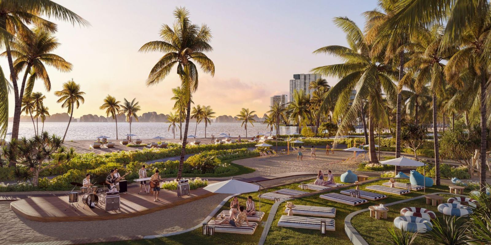 Hệ tiện ích trên bãi biển 1,2 km ngay dưới chân tòa nhà. Ảnh: BIM Land