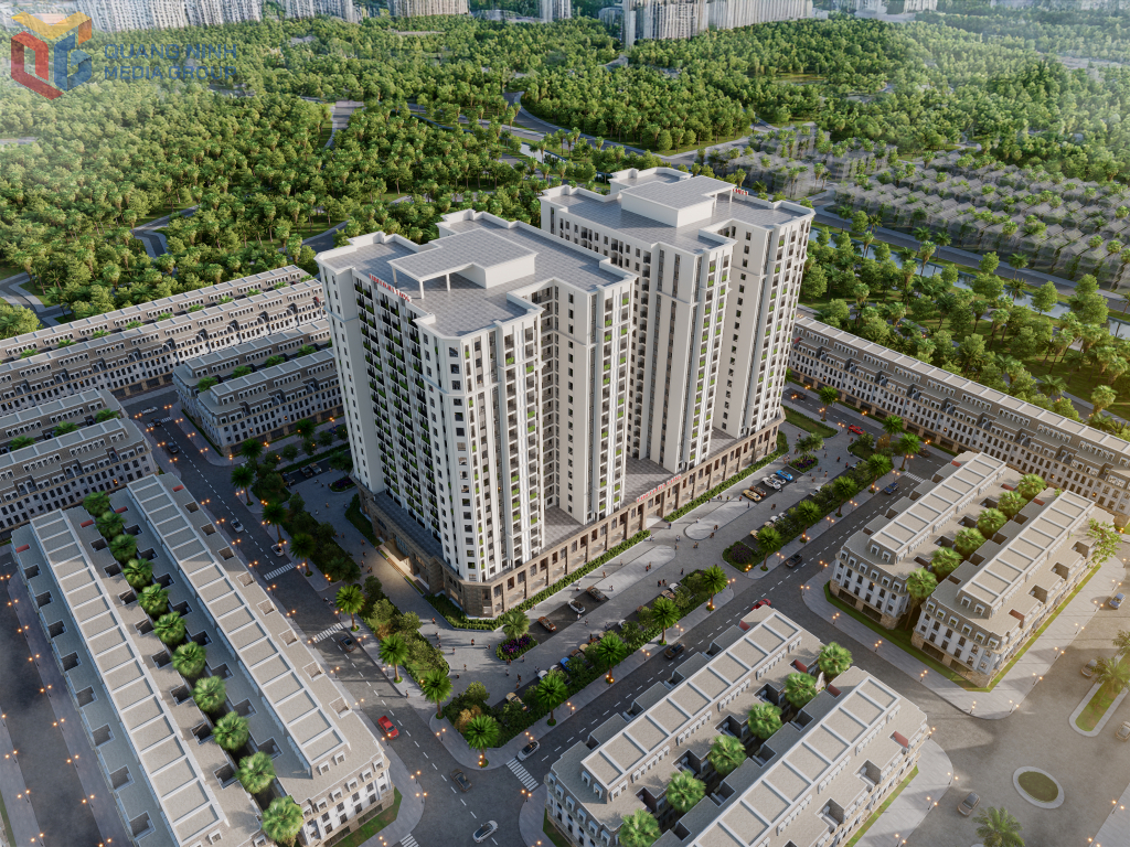 Phối cảnh Dự án NƠXH tại quỹ đất có ký hiệu OXH-01 thuộc dự án khu đô thị tại phường Cao Xanh và Hà Lầm
