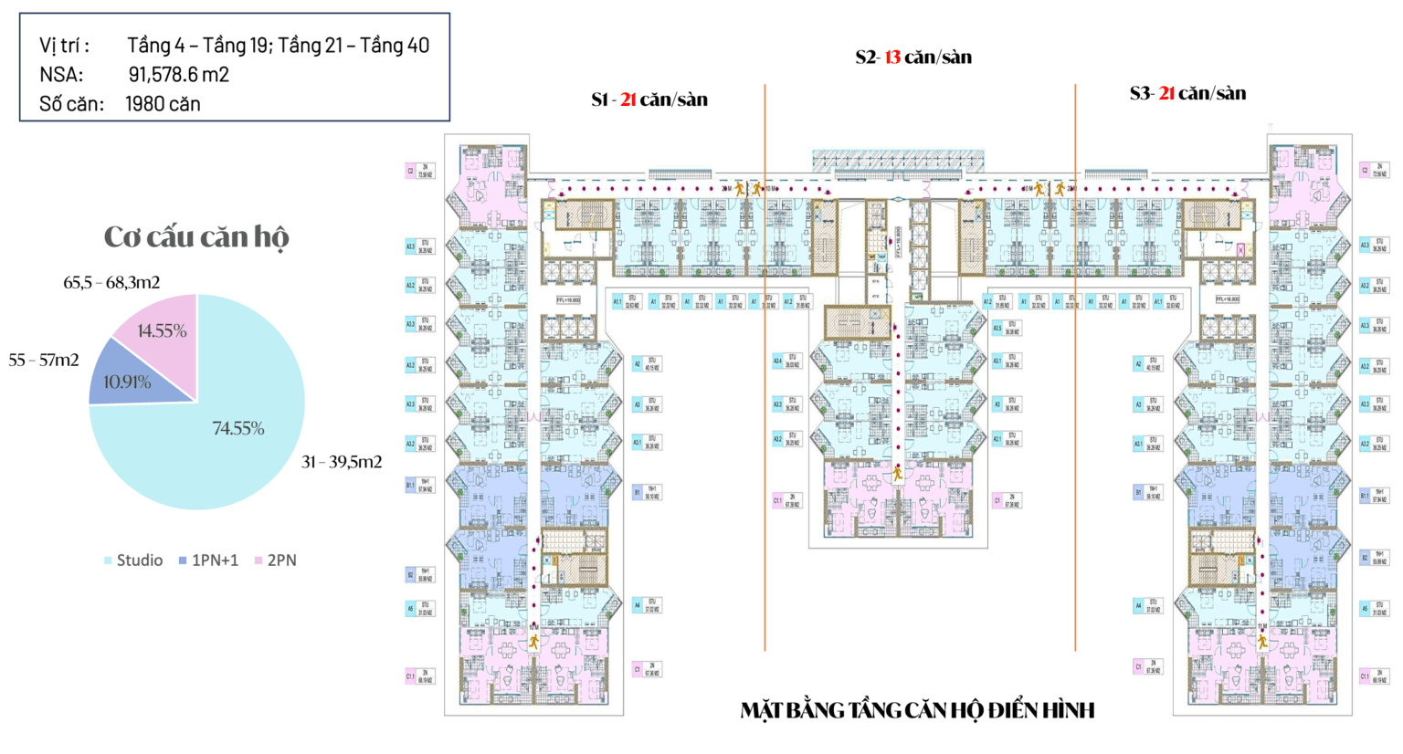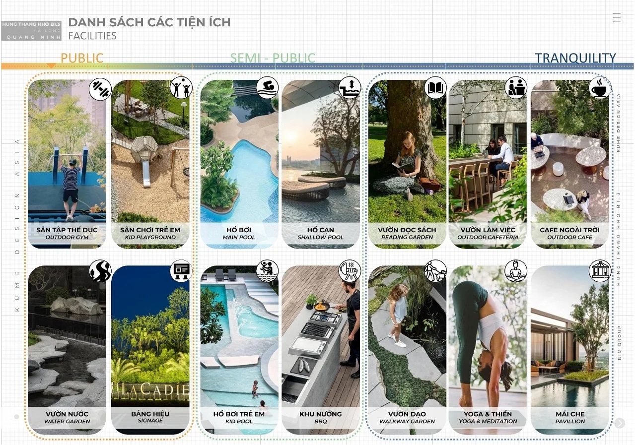- Tầng 20: Tiện ích cao cấp: Vườn thiền, khu vực Gym ngoài trời, Vườn vui chơi, khu BBQ, khu chiếu phim,...